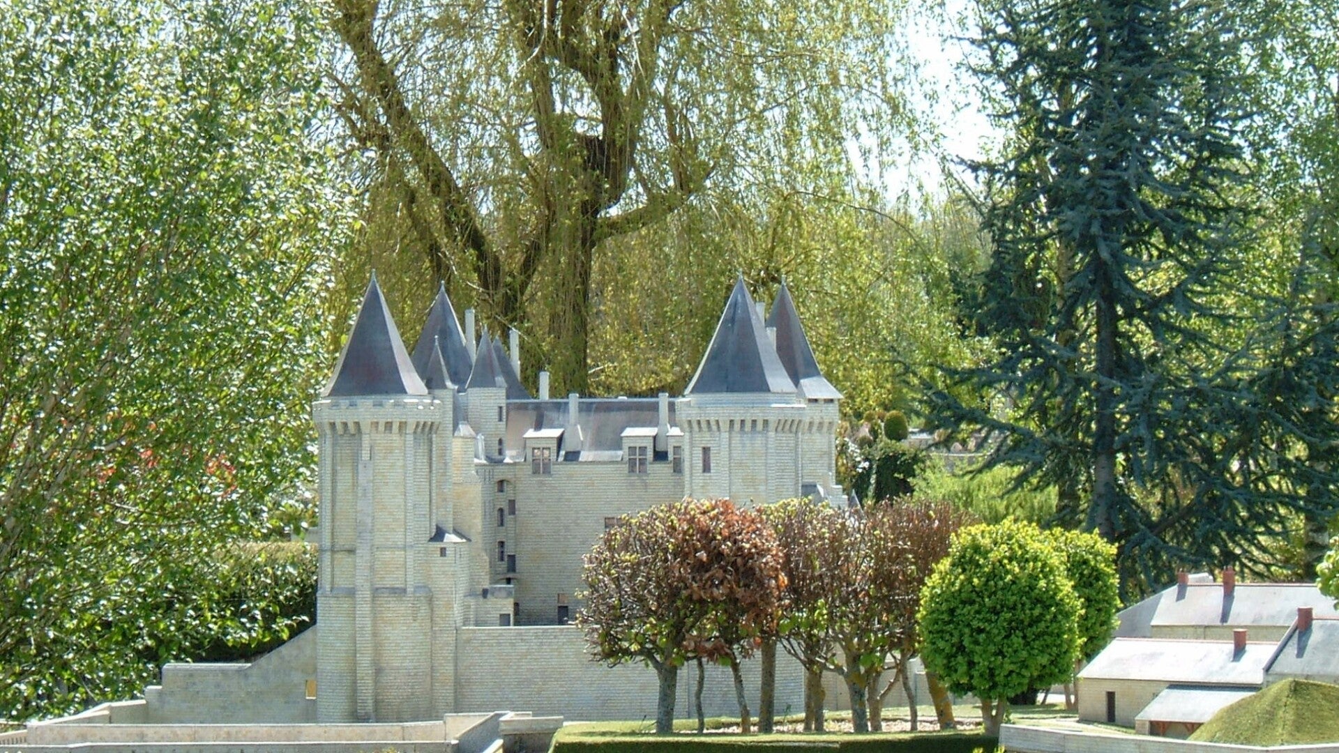 Het park toont miniatuurversies van de mooiste Loirekastelen, zoals Chambord, Chenonceau en Amboise, in een groene, parkachtige omgeving.